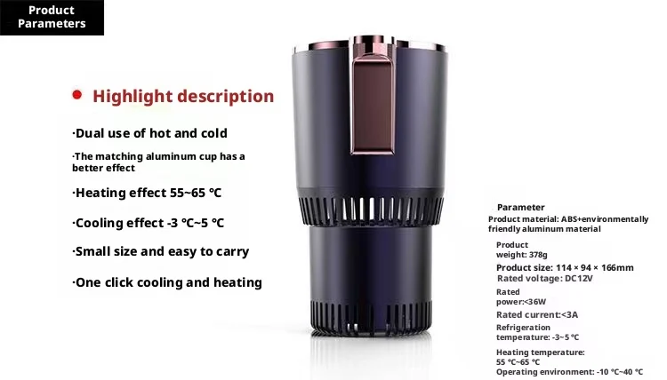 Portable Smart Car-mounted Cooling and Heating Cup with Temperature Display 12V 2-in-1 Cup for Fast Cooling and Heating