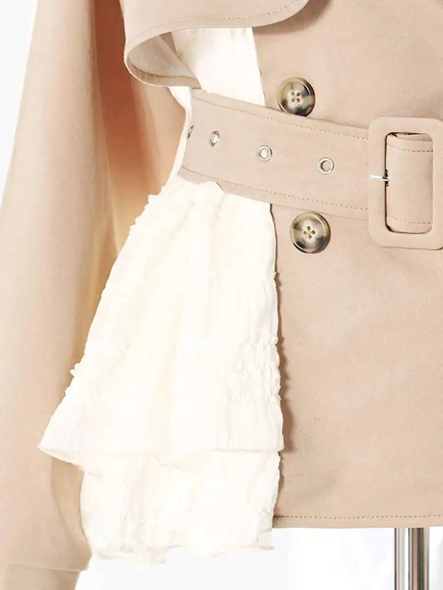TWOTWINSTYLE Hit Color Spliced Belt Deaigner Jackets For Women Lapel Long Sleeve Temperament Elegant Coat Female Fashon Style